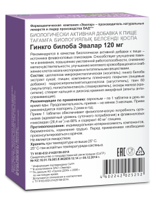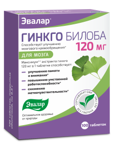 Гинкго Билоба 120 мг таблетки, 100 шт, Эвалар