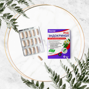 Эндокринол Йод — это специально разработанная фитоформула, в которой содержатся важные питательные элементы, необходимые для нормальной работы щитовидной железы: натуральный йод 150 мкг и лапчатка белая, способствующие: