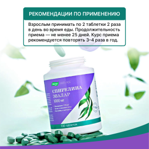 - Максимальная дозировка спирулины* — 1000 мг в одной таблетке