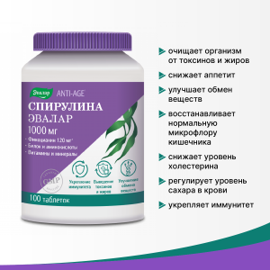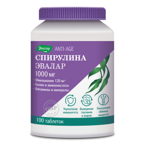 Спирулина 1000 мг таблетки, 100 шт, Эвалар