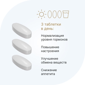 Содержание в 3 таблетках (суточном приеме) и % от рекомендуемого уровня суточного потребления (адекватного уровня): |