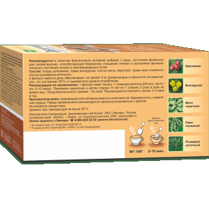 1 фильтр-пакет залить 1 стаканом кипятка (200 мл), настоять 5-10 мин. Принимать взрослым и детям старше 14 лет по 1 стакану 2 раза в день во время еды. Продолжительность приема – 20 дней. Рекомендуется повторять прием 3-4 раза в год.