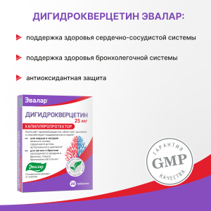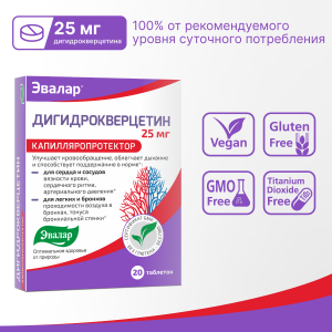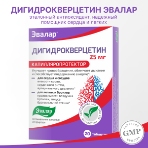 Дигидрокверцетин Эвалар 25 мг таблетки, 20 шт.