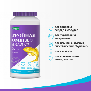- Тройная Омега-3 Эвалар – это тройная польза для поддержания: