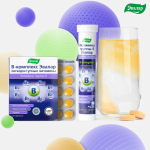 По статистике, дефицит витаминов группы В имеет примерно 60% жителей России. При этом 95% россиян испытывают стресс, 34% — испытывают его постоянно. За реакцию организма на боль и стресс отвечает наша нервная система. Для нормального функционирования она нуждается в ежедневной поддержке и, прежде всего, в витаминах группы В. Компания «Эвалар» представляет новую разработку — Витамины группы В в легкодоступной форме шипучих таблеток. Витамины группы В от «Эвалар» в форме шипучих таблеток содержат новые легко усваиваемые формы витаминов группы В и способствуют: