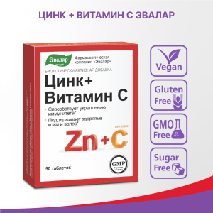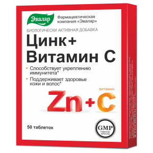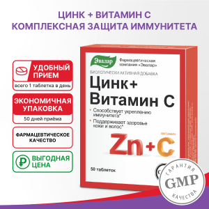 Цинк + Витамин С таблетки, 50 шт, Эвалар