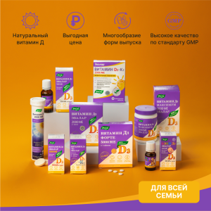 -Мягкие желатиновые капсулы с высоко усваиваемым масляным раствором витамина D3.