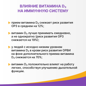 -Витамин D3 лучше принимать ежедневно, а не однократно (риск развития ОРЗ снижается на 19%);