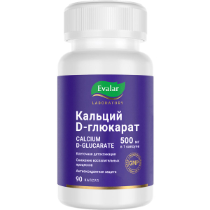 Кальций D-глюкарат от Evalar Laboratory изготовлен из сырья высокого качества в научно-обоснованной концентрации 500 мг в 1 капсуле.
