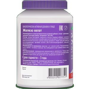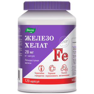 Для максимального усвоения1 железа попробуйте легко усваиваемый хелатный комплекс Железо хелат Эвалар. Железо хелат Эвалар содержит высокую дозировку железа (28 мг в 1 капсуле) и необходимые для лучшего усвоения железа витамины нового поколения в коэнзимных формах (витамин С, В9 и В12).