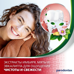 parodontax Экстракты Трав содержит экстракты имбиря, мяты и эвкалипта, которые помогают сделать чистку зубов приятной!