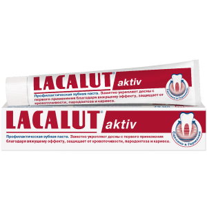 Зубная паста Lacalut aktiv создана для людей, страдающих воспалительными заболеваниями десен: гингивит, пародонтит. Lacalut aktiv содержит антисептик хлоргексидин, который быстро уничтожает большинство бактериальных возбудителей воспаления. Лактат алюминия в составе зубной пасты уплотняет рыхлые десны и уменьшает их кровоточивость. Эффективная и безопасная абразивность зубной пасты позволяет хорошо удалить зубной налет и бактерии с зубной эмали.