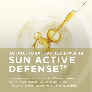 Технология активной солнцезащиты защищает клетки кожи от УФ-излучения, активирует защитные механизмы кожи и борется с преждевременным старением.