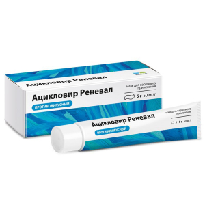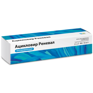 ПередозировкаИз-за минимального системного воздействия не ожидается возникновение нежелательных эффектов при приеме внутрь или при местном нанесении всего содержимого потребительской упаковки мази Ацикловир Реневал.