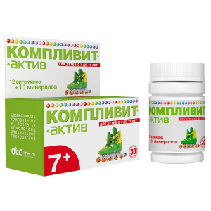 Действие БАД к пище «Компливит® Актив» обусловлено свойствами входящих в состав компонентов. Комплекс витаминов и минералов, являющихся важными факторами полноценного физического и интеллектуального развития ребенка, укрепления иммунитета, усиления адаптационных возможностей организма.