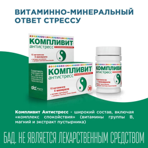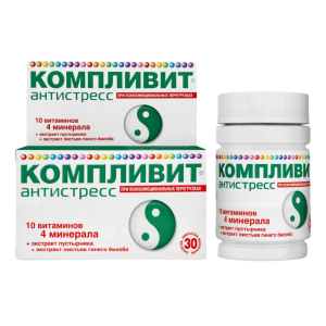 Компливит® Антистресс — «витаминно-минеральный ответ стрессу!» Это особый комплекс витаминов, минералов и растительных успокоительных компонентов.