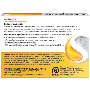 Стрепсилс - это лекарственные таблетки для рассасывания, которые эффективно борются с болью и раздражением в горле. Эти таблетки особенно хорошо подходят для лечения заболеваний горла, таких как фарингит, ларингит и ангина. Они имеют приятный вкус меда и лимона, благодаря чему рассасывание таблеток доставляет удовольствие. Упаковка содержит 36 таблеток, которые следует рассасывать каждые 2-3 часа. Они незаменимы при простудных заболеваниях, а также при болевых ощущениях в горле, вызванных длительным голосовым нагрузками, курением и другими неблагоприятными факторами.