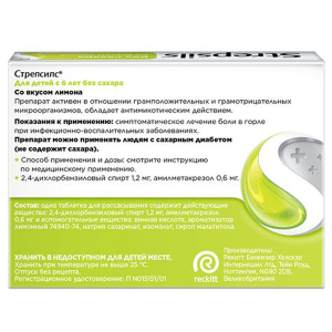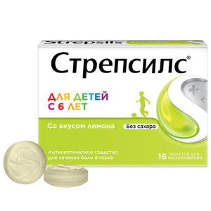 Стрепсилс таблетки для рассасывания для детей с 6 лет лимон без сахара, 16 шт.