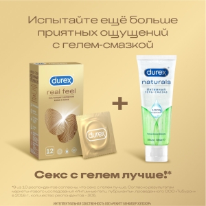 С Durex Real Feel вы можете почувствовать каждое движение, каждое прикосновение так, словно вас ничто не разделяет!